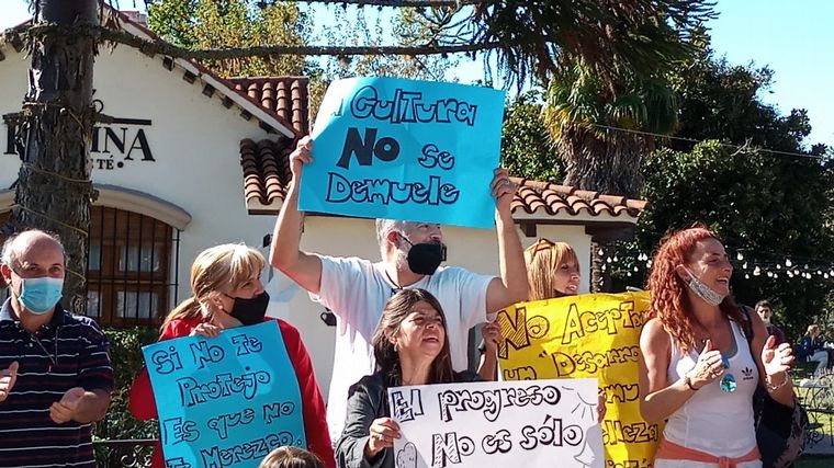 Los vecinos de la cuidad de La Falda realizaron este sábado una manifestación para pedir que no se derribe la antigua casona Isolina, donde se proyecta construir un edificio de departamentos.