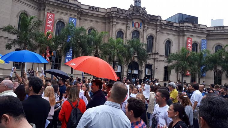 Propietarios y empleados de agencias de turismo se movilizaron este viernes frente al Patio Olmos por la baja en las consultas y ventas como consecuencia del impuesto del 30% a las compras en el extranjero y pasajes aéreos al exterior.