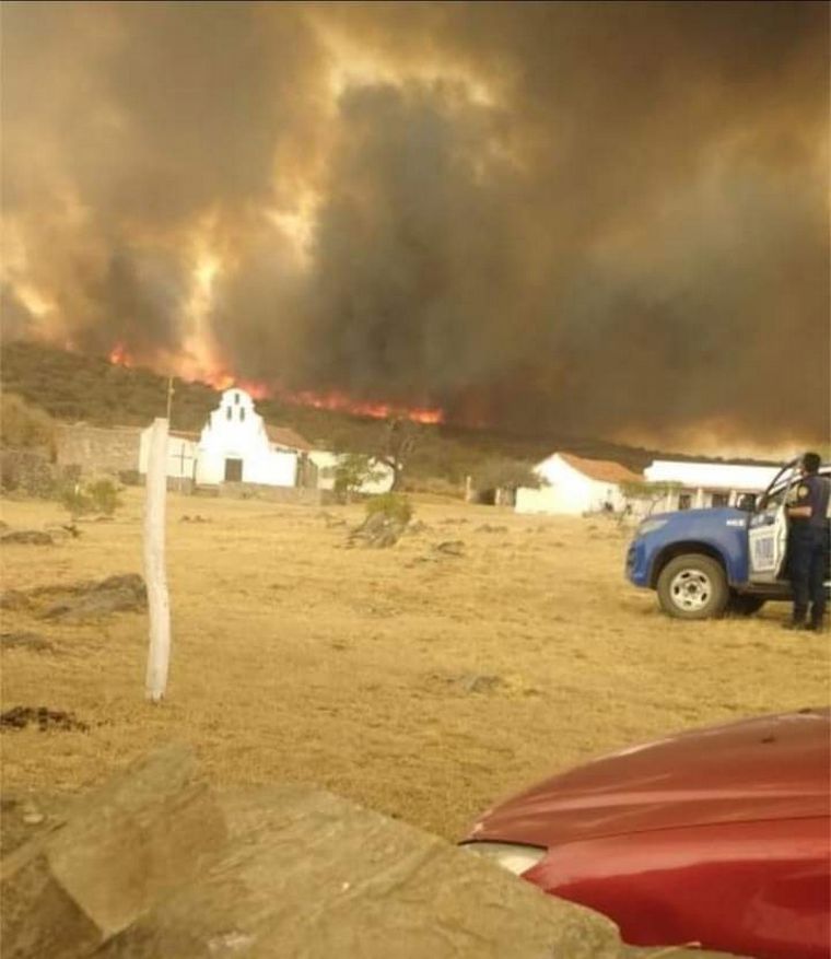 La zona de la Estancia Jesuítica La Candelaria también fue azotada por las llamas.
