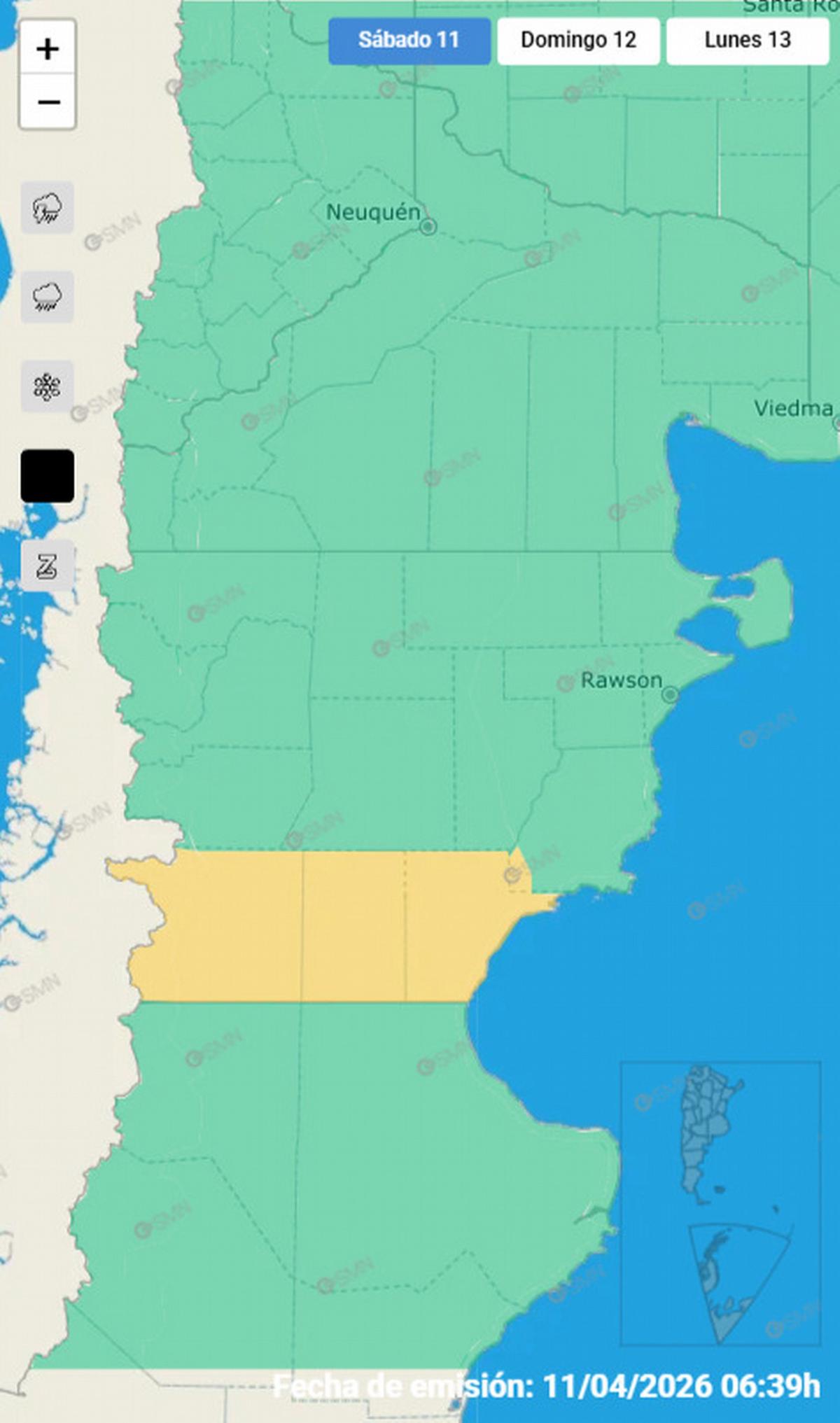En paralelo, el organismo mantiene vigente otra alerta amarilla por vientos en la Patagonia, específicamente en el sur de Chubut. Para este sábado, se prevén vientos del sector oeste con velocidades entre 40 y 65 kilómetros por hora, con ráfagas que podrían alcanzar los 90 kilómetros por hora.