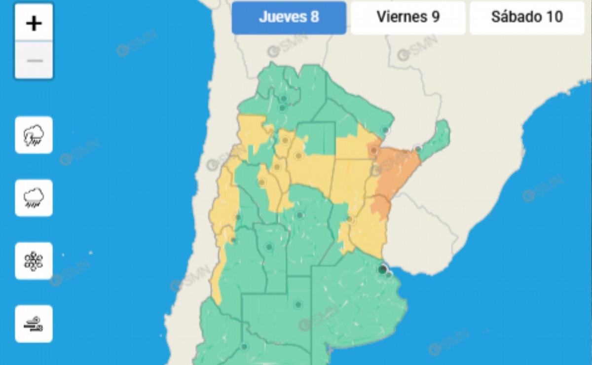 En el caso de Entre Ríos y Corrientes, el aviso subía a naranja.