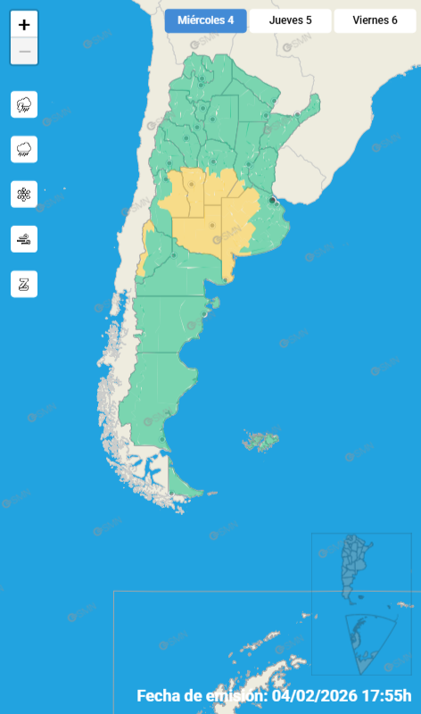 Desde el organismo nacional recomendaron a la población mantenerse informada a través de los canales oficiales, evitar actividades al aire libre durante el desarrollo de las tormentas y tomar precauciones ante la posible caída de granizo y la intensificación del viento.