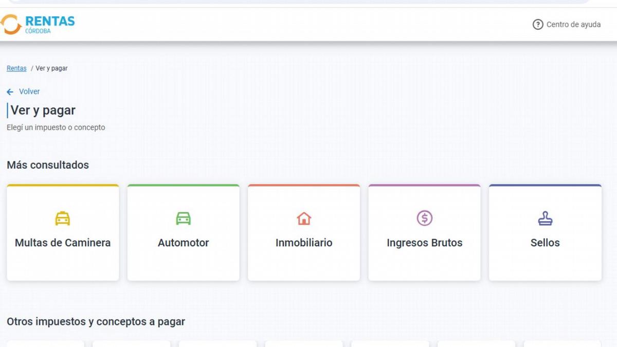 Al ingresar a la página, permite pagar multas de la Caminera, Rentas de automotor e inmobiliario, Ingresos Brutos y Sellos, además de otros impuestos.