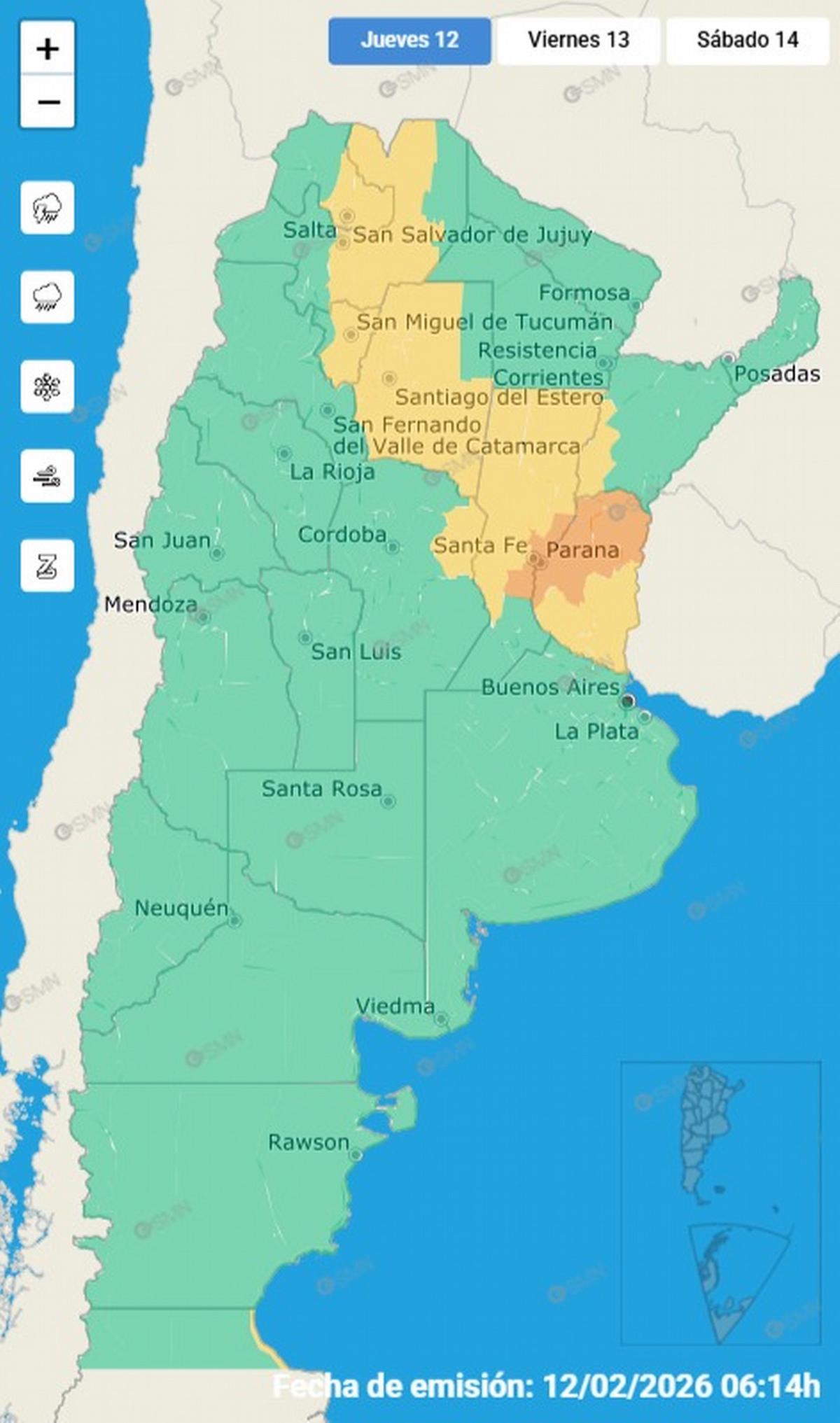 ¿Cuál es la principal preocupación actual? La preocupación se centra en el sudeste de Santa Fe y el centro de Entre Ríos, bajo alerta naranja.