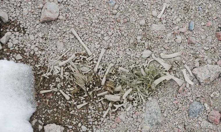 En el lugar se encontró una gran cantidad de huesos y plumas que parecían restos “frescos” de aves, así como guano y montículos de guijarros que estos animales usan para anidar.