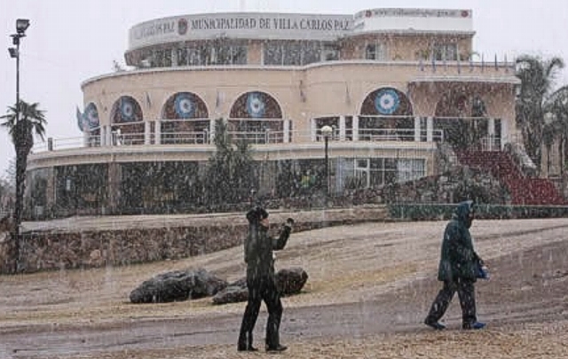 Pasadas las 10 de la mañana de hoy cayeron los primeros copos de nieve en el ingreso a Villa Carlos Paz.
