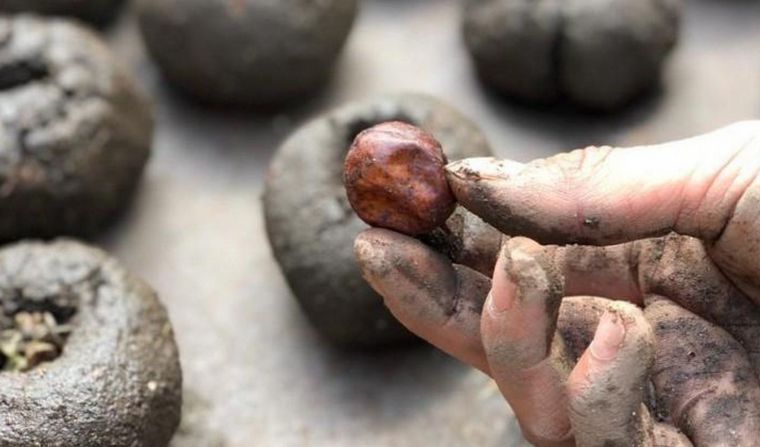 Cada una de ellas se elabora con tres partes de arcilla y una de tierra mezclada con agua a las que se le coloca en su interior semillas de flora autóctona.