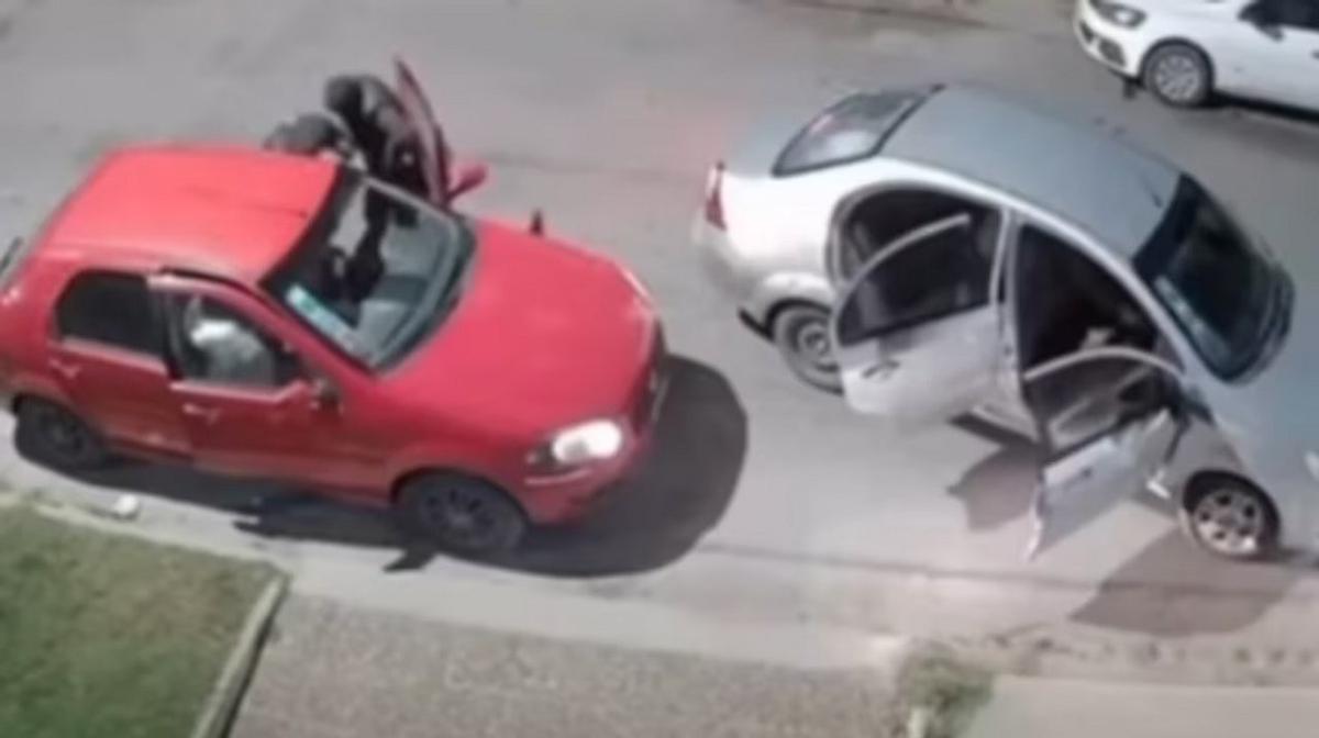 La secuencia fue capturada por las cámaras de seguridad de la zona, que evidencian cómo el delincuente golpeó la ventanilla del coche de las víctimas y trató de forzar a uno de ellos a salir del vehículo.