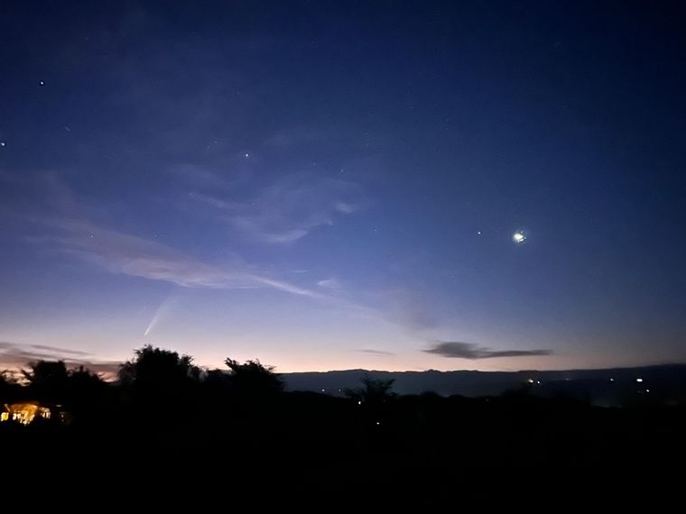 “Hoy nos juntamos a ver principalmente Venus y Saturno, que lo tenemos luego de la puesta del Sol”, explicó Eric Martínez a Cadena 3, guía de astroturismo. “A su izquierda tenemos el cometa Atlas, que está ahora en su punto más cercano a nosotros y en los últimos días de visibilidad”. Además, mencionó que también se pueden observar Júpiter y Marte, siendo este último más difícil de ver debido a su posición baja en el horizonte.