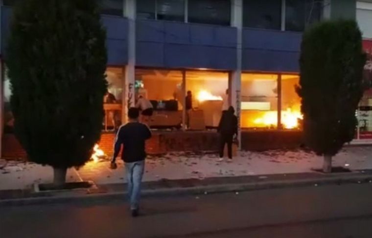 Todo sucedió pasadas las 20:30 cuando manifestantes que se desprendieron de una columna que protestaba contra la megaminería en la provincia ingresaron en la redacción del diario y ocasionaron destrozos e incendiaron la planta baja del edificio.