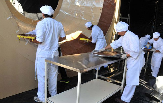 Los pasteleros comenzaron la elaboración en el Centro Cívico que demandará unos 6.000 kilos de chocolate y costará más de 180 mil pesos según precisó a Cadena 3 una empleada de las empresas involucradas.