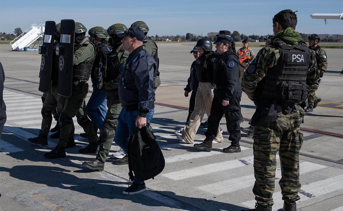 El vuelo arribó primero a Rosario, donde Rocha y Leguizamón quedaron a disposición del Tribunal Oral Federal N°1, que los investiga por integrar una red de narcotráfico ligada a Olga "Tata" Medina, exlíder de puntos de venta de droga asociada a Los Monos.