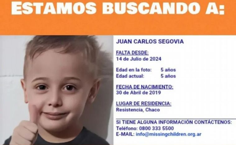 El 14 de julio de este año se dio a conocer que Juan Carlos Segovia, de 5 años, desapareció de su casa en Resistencia, Chaco, y tras la denuncia de su papá, la principal hipótesis es que su mamá, Soledad Patricia Ubeda, lo raptó y se lo llevó a otra provincia.