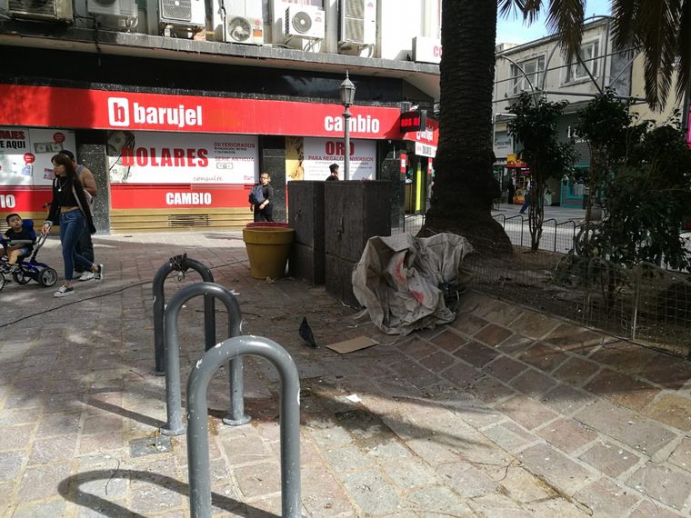 A pesar de ser un lugar histórico y muy pintoresco, hoy no muestra su mejor cara: muchas personas en situación de calle se instalaron en lugar con cartones, nailon y colchones.