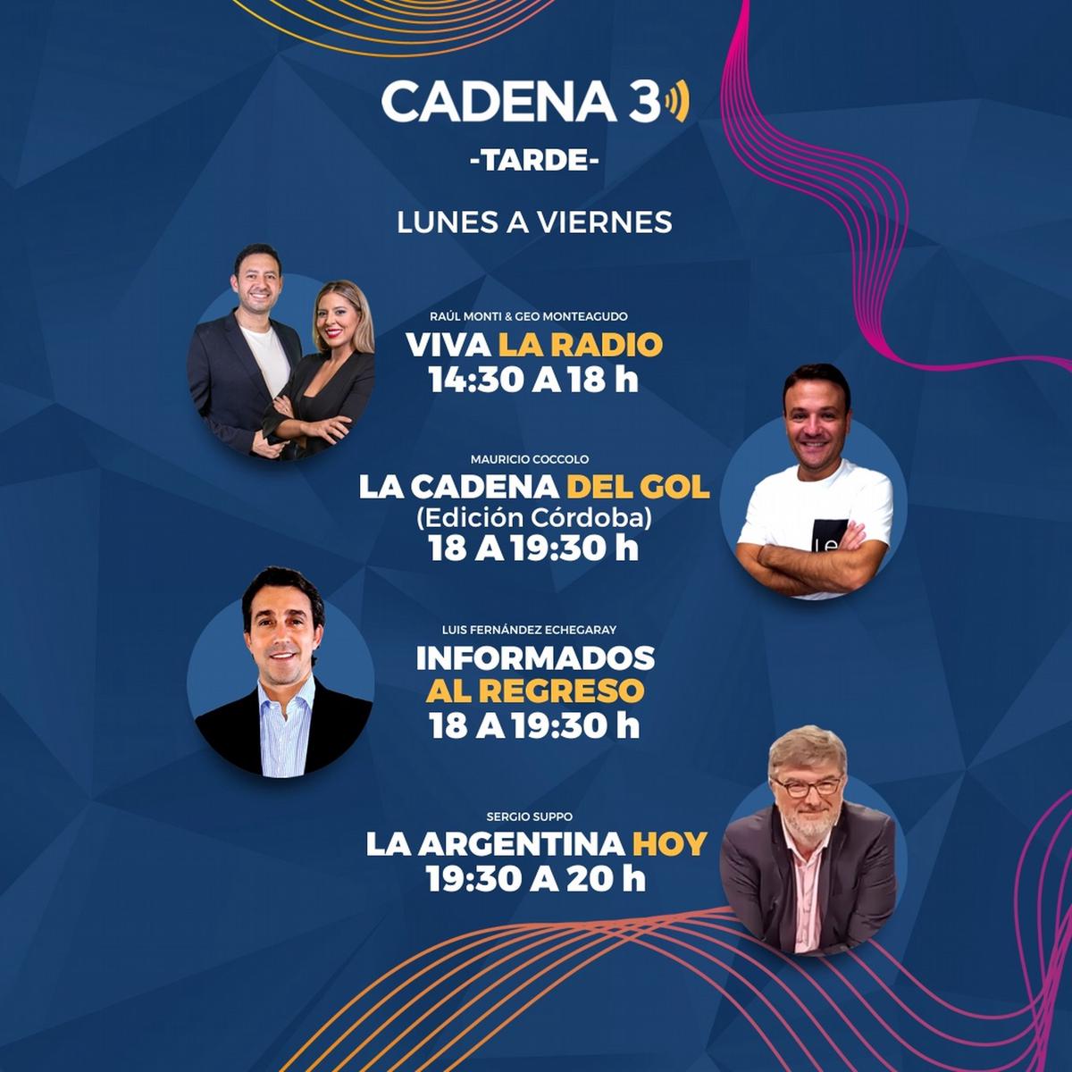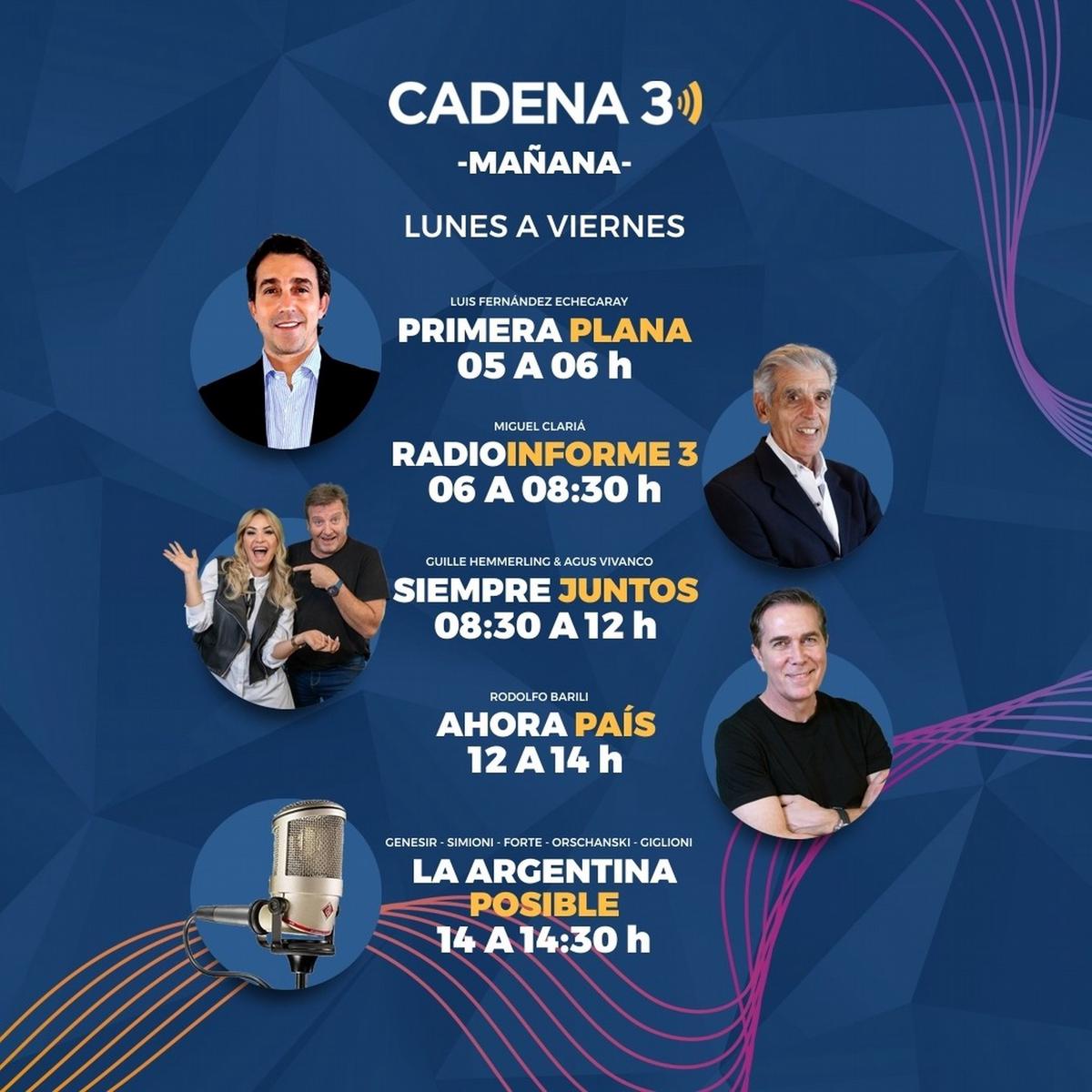 Con esta nueva grilla, Cadena 3 reafirma su liderazgo en el ámbito radiofónico y su compromiso con la audiencia. La radio número uno del país sigue ampliando su oferta de contenidos, con más de 650 emisoras adheridas en toda Argentina, y y también a través de la app, su sitio web y su canal de YouTube.