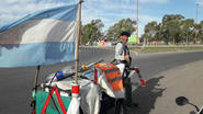 "La gente es solidaria, paran a darme agua o gaseosa. Este viaje lo subvenciono sólo y es más, cuando llego a un lugar pido donde bañarme y lavar la ropa", confesó.