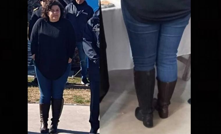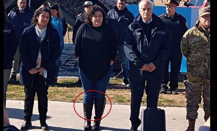 En las imágenes que se registraron del acto se ve a Vizzotti con dos botas de diferentes pares, de distinto color y tamaño: una de caña media de color marrón y la otra de caña alta, de color negro.