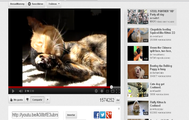 Una página propia en Facebook y más de un millón de visitas en Youtube, convirtieron a "Venus" en la gata más famosa del mundo.