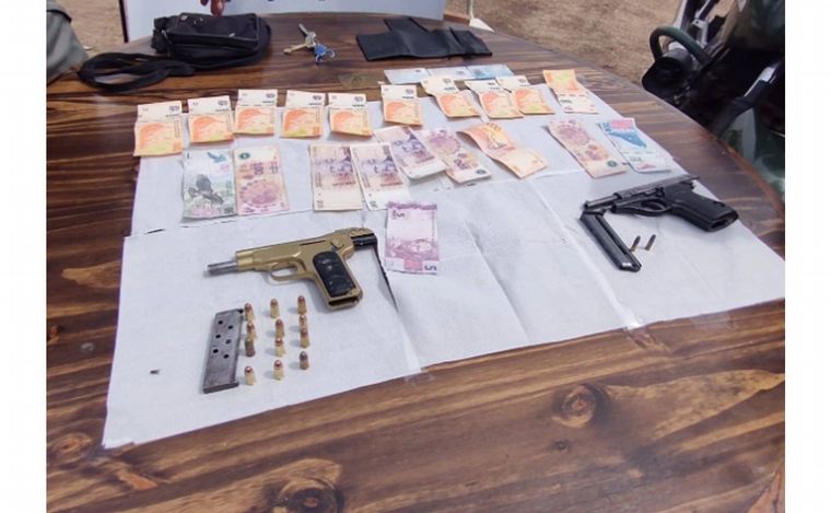 Además, una billetera con dinero en efectivo -11.850 pesos- y un documento de identidad perteneciente a un ciudadano que viajaba en el colectivo, quien negó ser propietario de las armas de fuego.