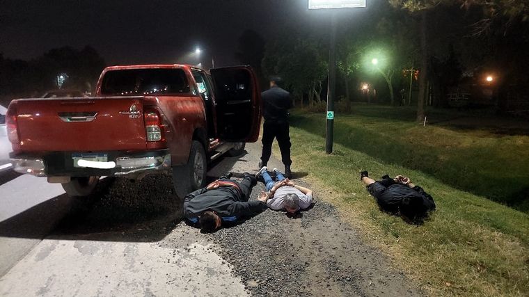 La Subjefa del Comando Radioeléctrico, quien se encontraba en las inmediaciones en su vehículo particular, acudió al lugar y sorprendió a los ocupantes de la camioneta mientras intentaban escapar. Tras una breve persecución que finalizó sobre Ruta 9, sentido al oeste, el móvil policial a cargo logró interceptar el vehículo y detener a tres de los involucrados.