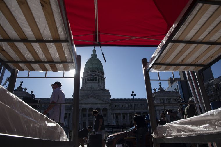 "Vamos a estar nuevamente en la calle con un colchonazo y olla popular en el Congreso bajo las consignas que ajusten a la casta, no nos dejen sin casa", dijeron previamente los organizadores.