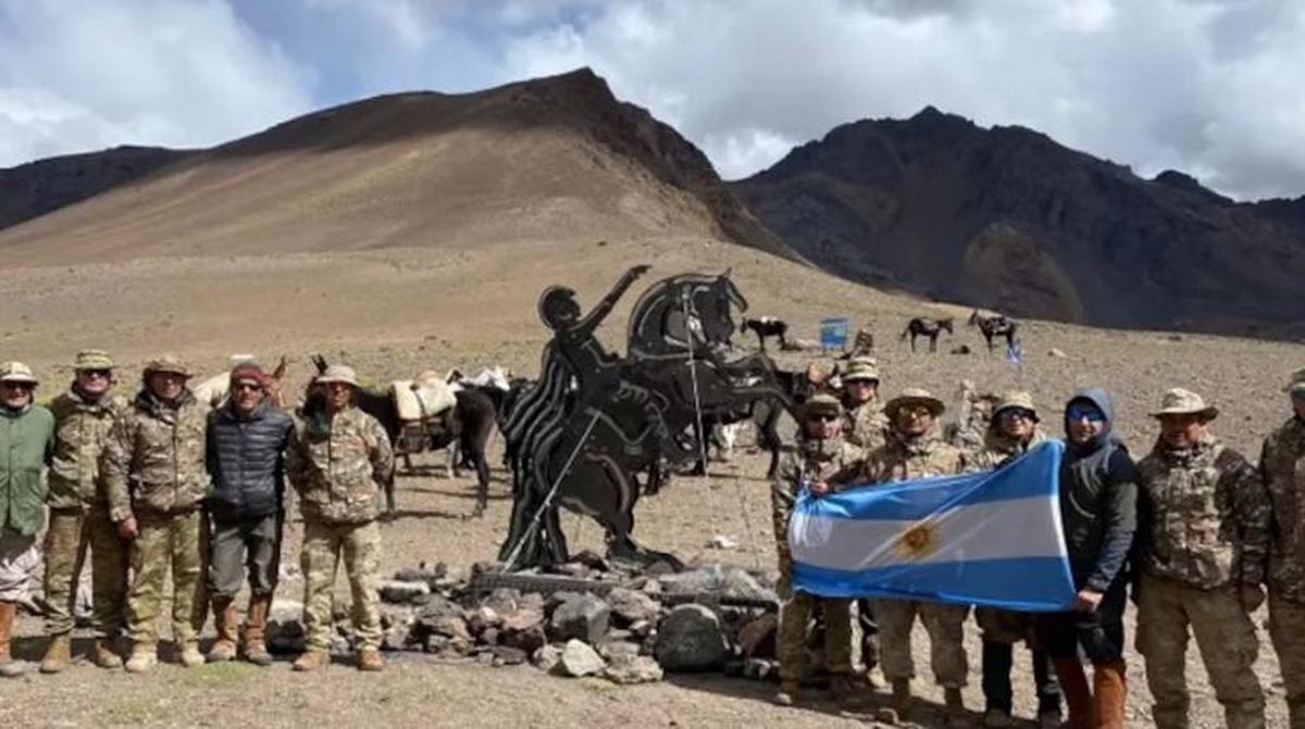 La estructura pesa 318 kilos y fue trasladada a lomo de mula hasta el Paso Pato Sur, a 4.300 metros de altura. El homenaje busca revalorizar el histórico cruce sanmartiniano y preservar uno de los sitios más emblemáticos de la gesta libertadora.
