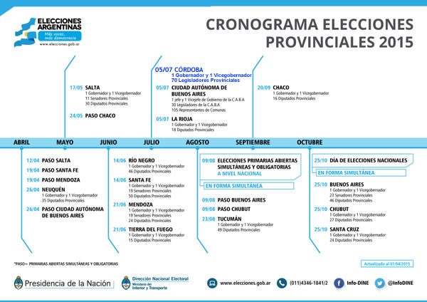 Los comicios en la Provincia serán el 5 de julio y con su inclusión en las fechas ya confirmadas, así se modifica el cronograma de la Dirección Nacional Electoral (DINE).