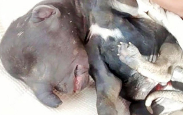 El animal con la extraña malformación fue llevado al Centro de Sanidad Animal, aunque los profesionales no supieron explicar las razones de lo ocurrido.