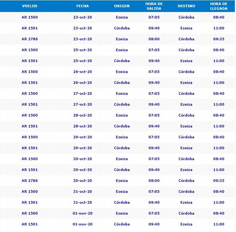 Entre esa fecha y el domingo 1 de noviembre, la aerolínea tiene pautados vuelos que conectan el aeropuerto Ingeniero Ambrosio Taravella de Córdoba con el de Ezeiza en Buenos Aires y viceversa.