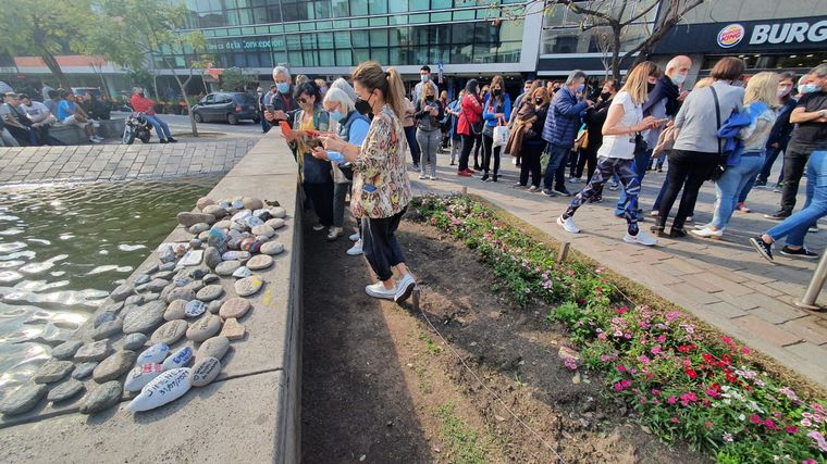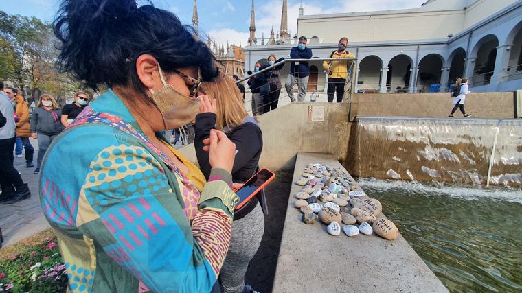 Al igual que en el resto del país de manera simultánea, la Marcha de las Piedras tuvo su espacio este sábado en Córdoba, para que toda la comunidad pudiera acercar su piedra con el nombre escrito del familiar, amigo o conocido fallecido por Covid-19 que desearan honrar.