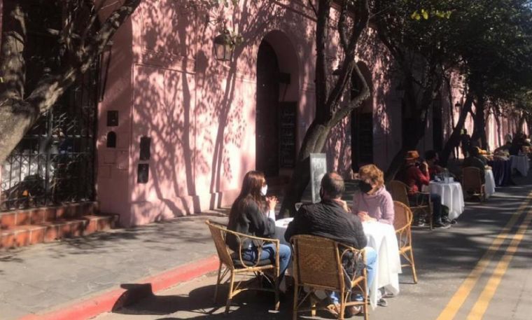 El restorán Solares de Tejeda, ubicado en calle 27 de abril esquina Independencia, en pleno Centro de la ciudad de Córdoba, decidió sacar las mesas a la calle.