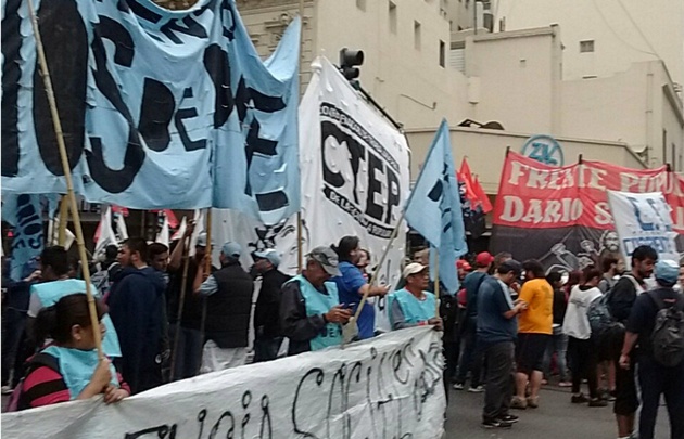 Los manifestantes, enrolados en el Movimiento Evita y la Confederación de Trabajadores de la Economía Popular (CTEP), entre otras agrupaciones, exigen las implementación de la Ley de Emergencia Social.