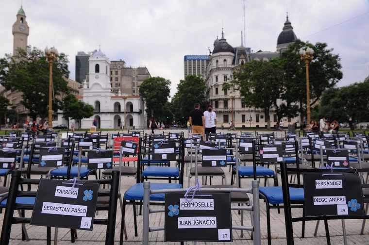 El pronunciamiento formó parte de un documento consensuado entre varias organizaciones que agrupan a sobrevivientes y familiares, que fue leído durante un acto en la Plaza de Mayo, donde se desplegaron 194 sillas vacías, cada una con los nombres de los fallecidos y la edad que tenían en 2004, en el marco de la jornada de homenaje que incluyó una misa en la Catedral Metropolitana y una marcha a Once.