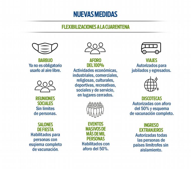 Entre otros puntos, se elimina la obligatoriedad del tapabocas en espacios públicos y vuelven los hinchas a los estadios de fútbol. En la nota, el detalle.