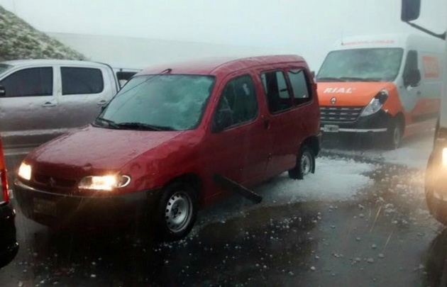 Algunos automovilistas que lograron resguardar los vehículos bajo techo, igualmente resultaron damnificados en algunos laterales por la dirección en que caían las piedras.