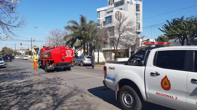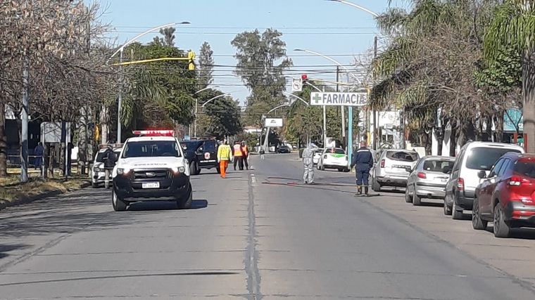 Durante el mediodía del sábado, los efectivos de la Policía trabajaron en el lugar junto con la intervención de los Bomberos Voluntarios para que desinfección de la zona.