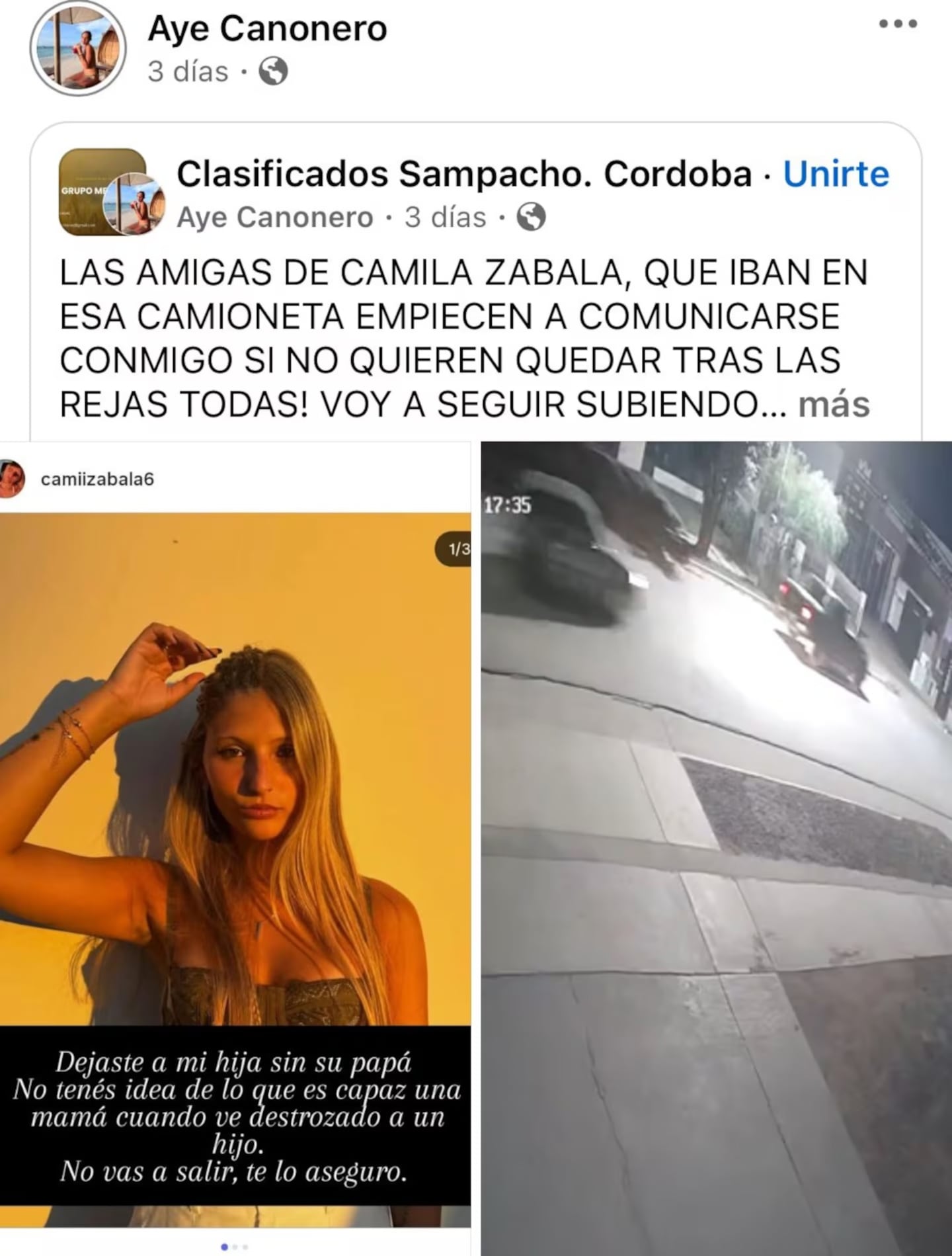“Dejaste a mi hija sin su papá. No tenés idea de lo que es capaz una mamá cuando ve destrozado a un hijo. No vas a salir, te lo aseguro”, escribió Canoneno en redes sociales, en una publicación que rápidamente se viralizó. El mensaje fue acompañado por una captura de una imagen de la cuenta de Instagram atribuida a la acusada.