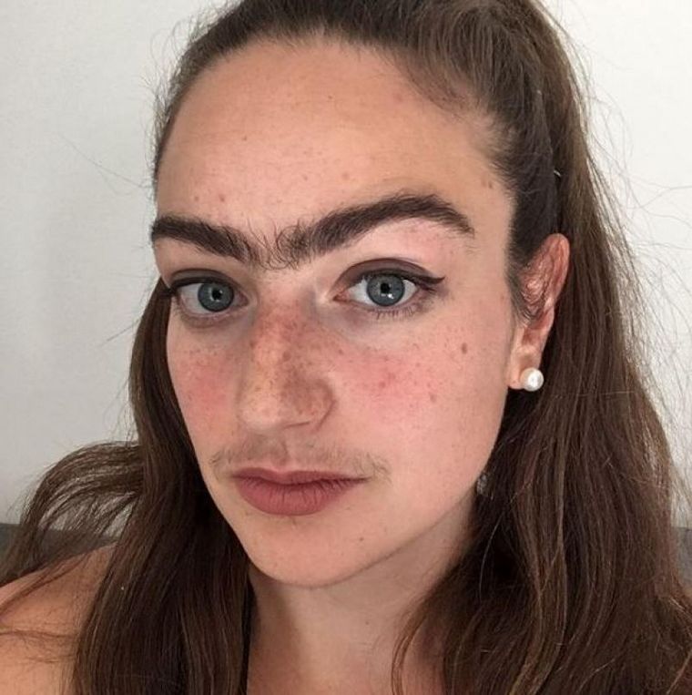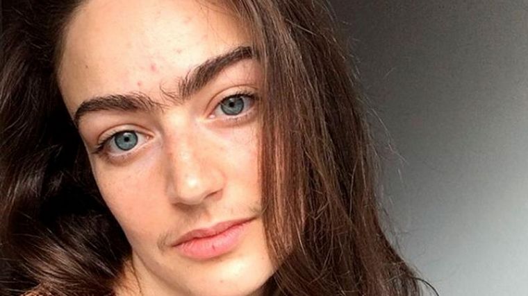 La joven danesa, de 31 años, dejó de depilarse sus cejas y bigote hace un año durante la cuarentena.
