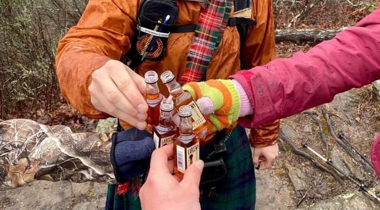 En la foto se logra ver a un grupo de personas brindando luego de una caminata.
