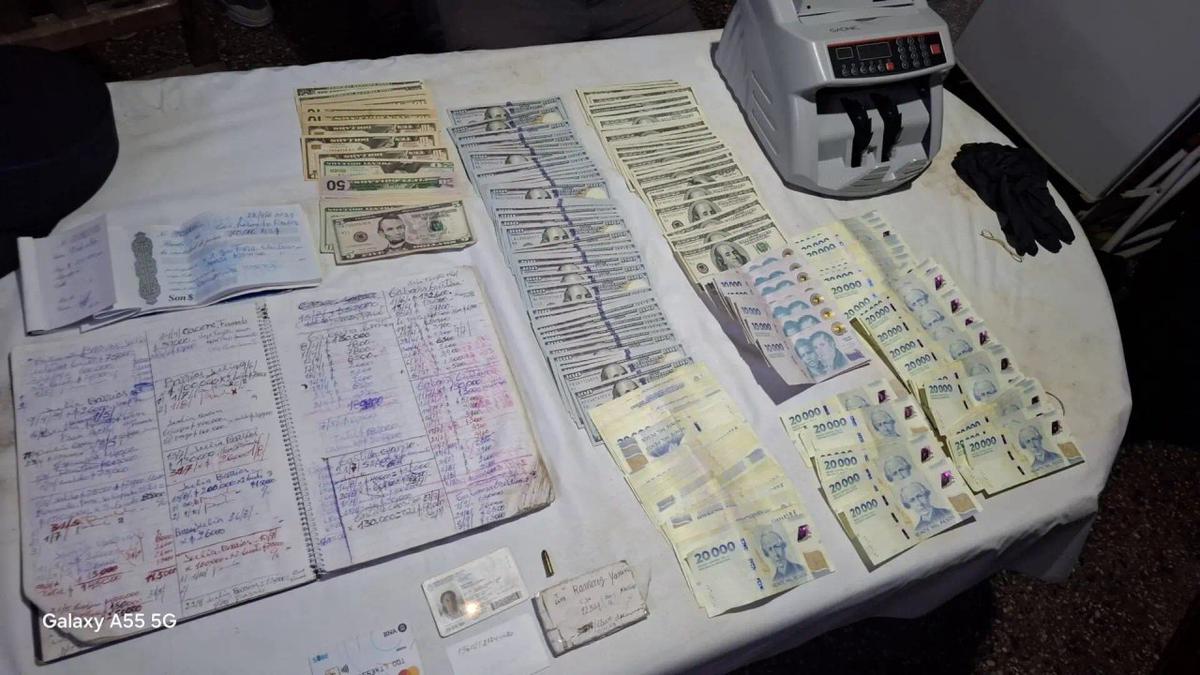Se incautaron más de dos millones de pesos, casi 10 mil dólares, documentos y una máquina de contar billetes.