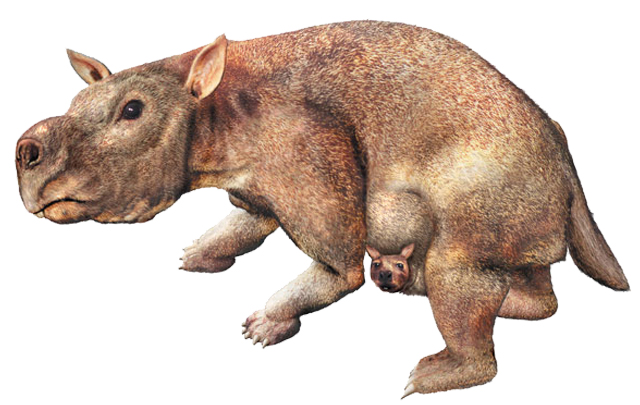 Entre los descendientes de los diprotodontes figuran los koalas y los actuales wombats, mucho más pequeños que sus ancestros, ya que estos marsupiales de patas cortas y musculosas pesan entre 20 y 35 kilogramos y miden un metro de alto. Se les encuentra en el sureste de Australia y en un parque protegido en el centro de Queensland.