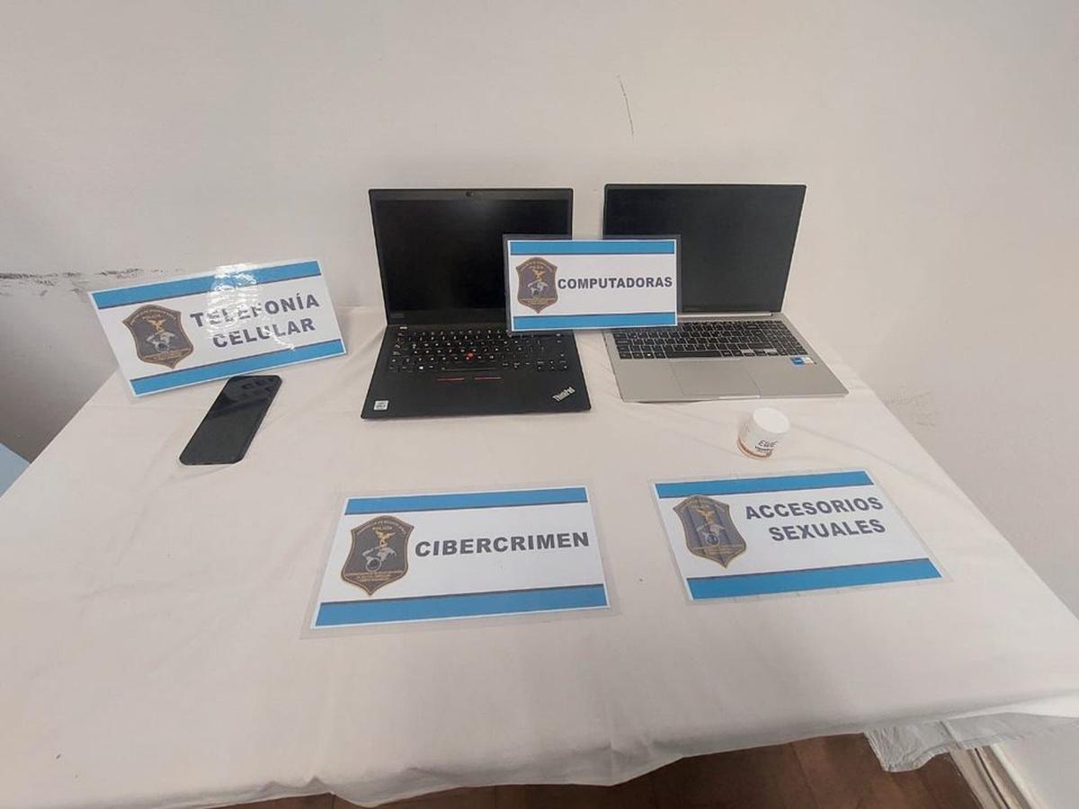 La policía realizó un allanamiento en su vivienda, donde se incautaron dos notebooks, un teléfono celular y un recipiente de vaselina, elementos que podrían ser relevantes para el caso.