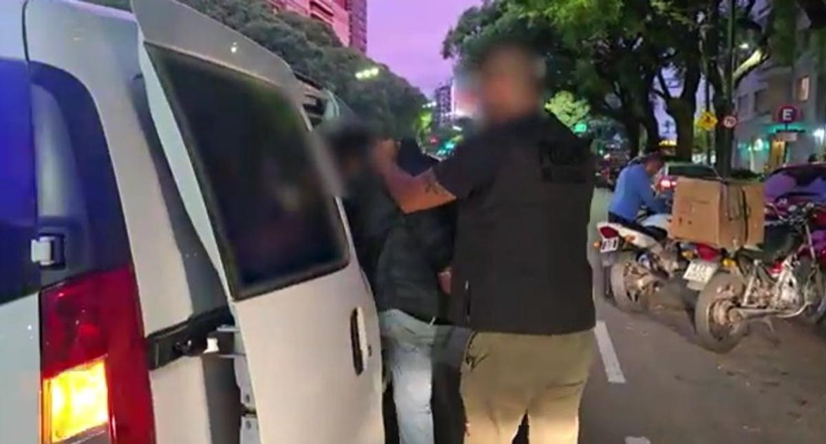 La policía los identificó a través de cámaras de seguridad y los detuvo en un vehículo de apoyo.