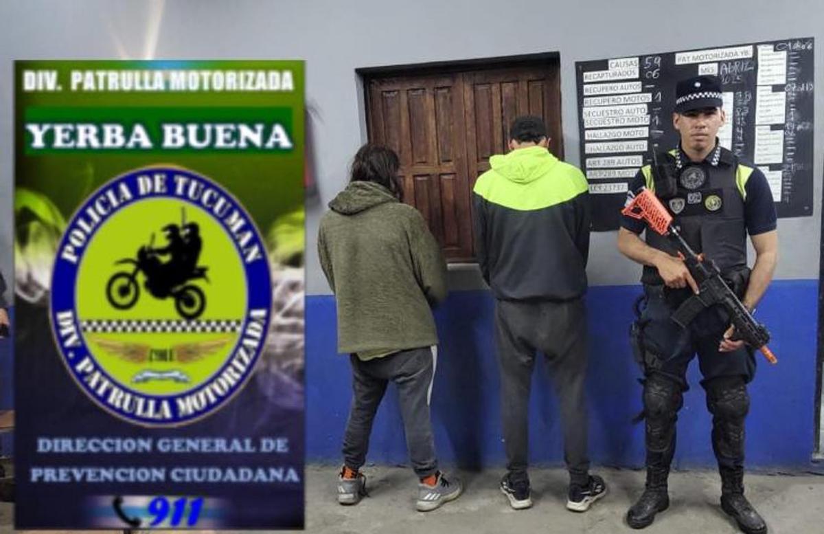 Este jueves detuvieron a dos hombres en la ciudad tucumana de Yerba Buena, quienes fueron interceptados para hacer un control de rutina cuando transitaban en una motocicleta en calle San Luis y Tierra del Fuego.
