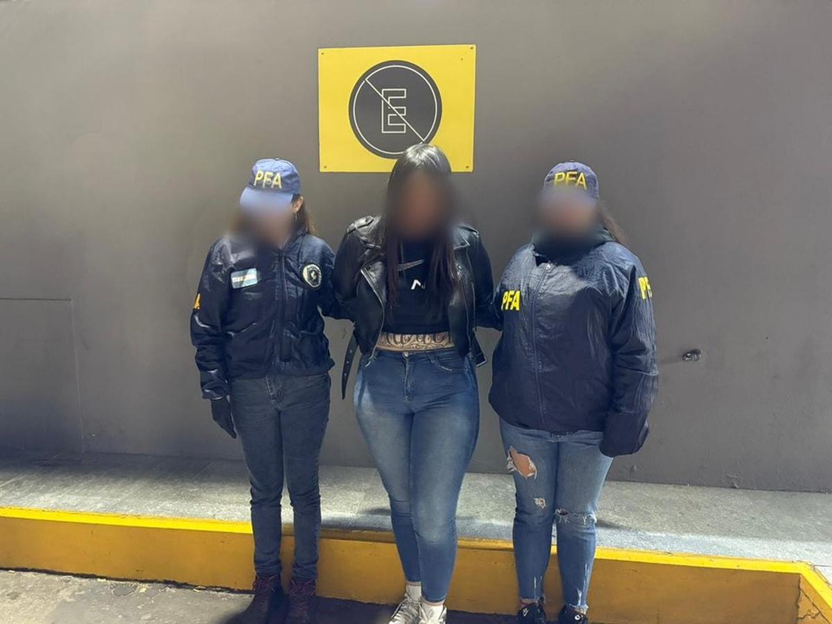 Finalmente, la presunta narcotraficante fue capturada en la vía pública, a la vez que se le incautaron dos teléfonos celulares para su posterior análisis forense de datos y un Documento Nacional de Identidad (DNI) a nombre de otra mujer llamada Ivonne.