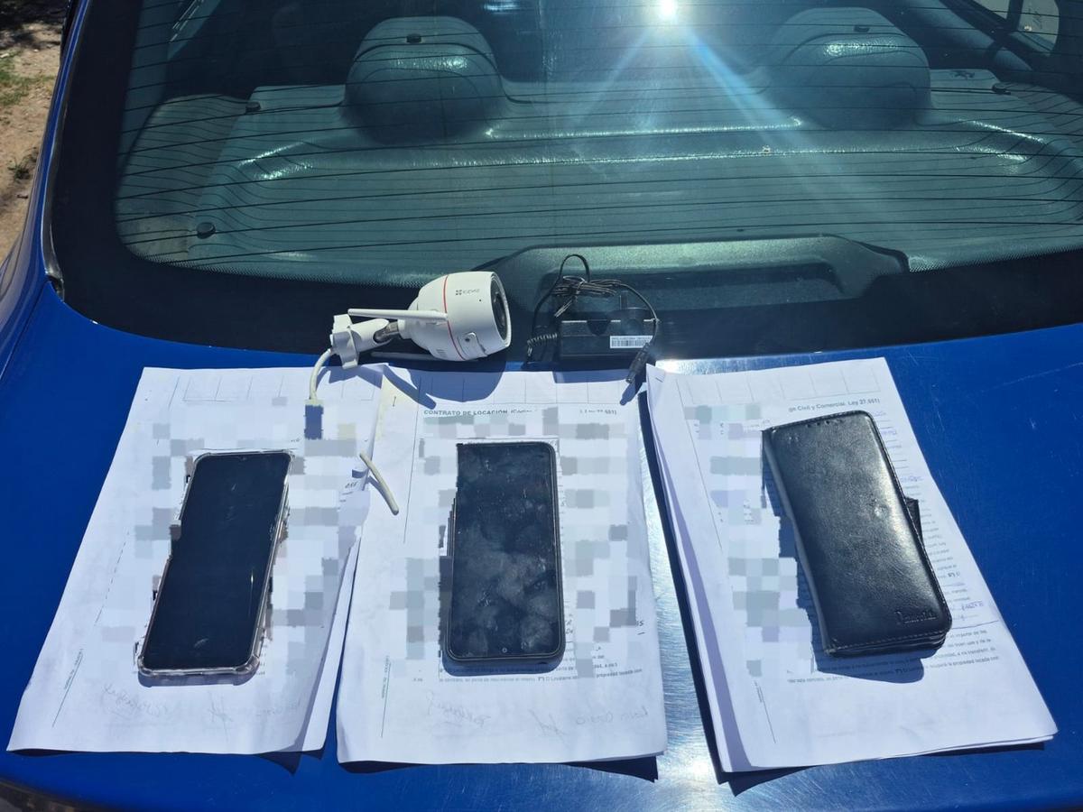Con la intervención policial, se procedió a la aprehensión de ambas y al secuestro de diversos elementos que agravaron su situación: un automóvil Chevrolet Corsa, tres teléfonos celulares, una cámara de seguridad sustraída del inmueble y contratos de locación apócrifos, además de otra documentación de interés para la causa.