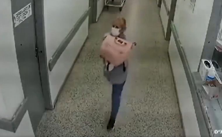 En las imágenes del propio hospital se observa a la mujer que ingresa a una habitación y luego escapa corriendo con el recién nacido en brazos y con barbijo puesto, con la idea de evitar ser reconocida.