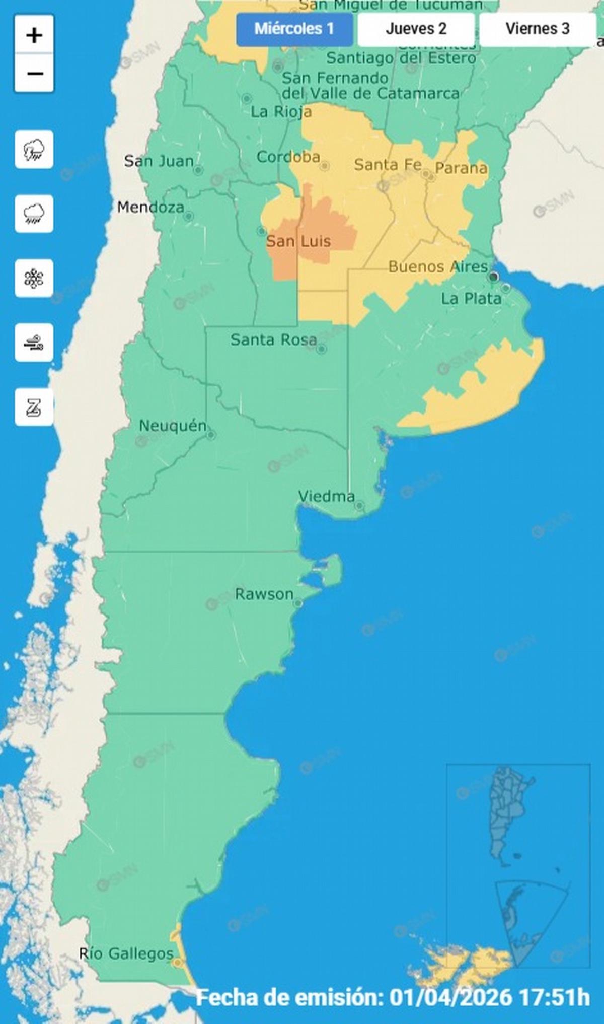 El alerta del Servicio Meteorológico Nacional.