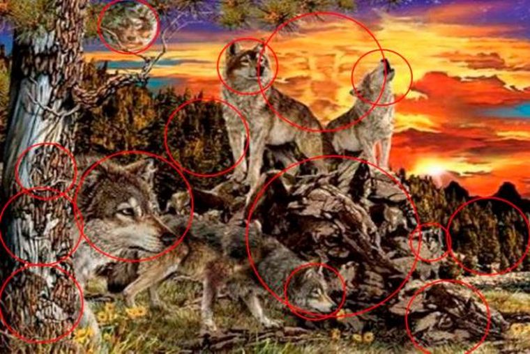 Exactamente hay 14 lobos en la imagen. Pero no hay una respuesta correcta, sino que depende de cuántos se vean se puede descubrir un rasgo de la personalidad.