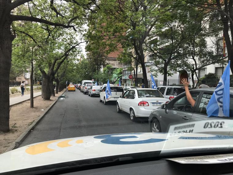 La caravana de autos avanzó por calle Maipú y se dirigió hacia el Centro Cívico para hacer sonar su descontento frente a las autoridades provinciales.